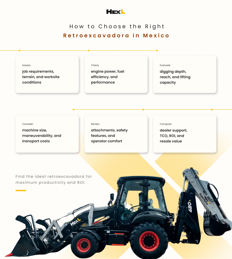 The first step before buying retroexcavadoras or browsing listings is to first define your requirements. You need to evaluate whether you’re working in the tight urban conditions of Guadalajara or the rocky terrains of northern Mexico. Different soil types & space limitations need specific machine configurations. Matching a machine to your needs or specific environments ensures minimal downtime & the highest ROI.